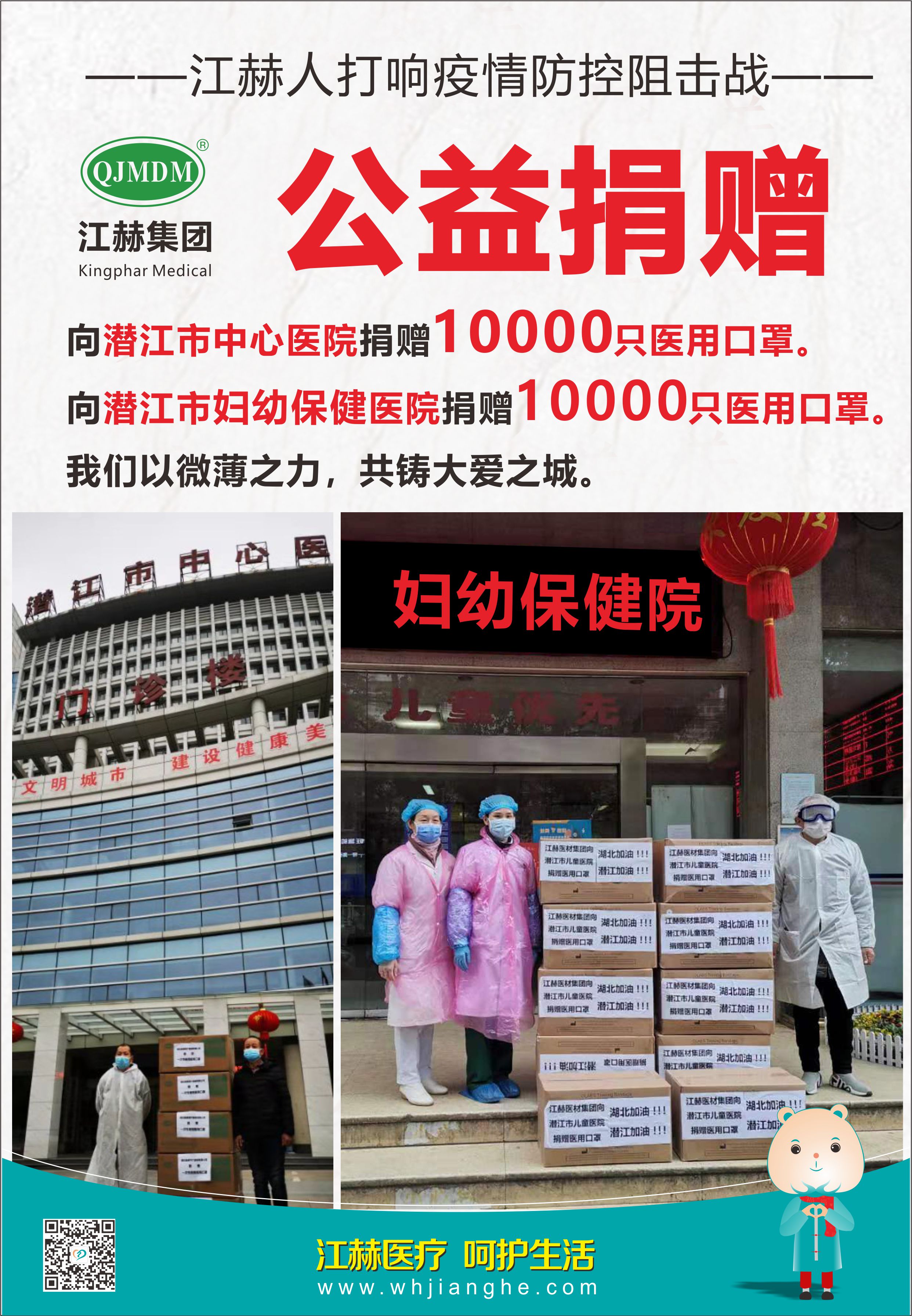 疫情當(dāng)前,江赫集團(tuán)始終把“呵護(hù)人民健康”作為公司的企業(yè)使命,在防治新型冠狀病毒的戰(zhàn)斗中,積極響應(yīng)國(guó)家號(hào)召,以實(shí)際行動(dòng)踐行“一方有難八方支援”的人道主義精神,開展公益救助活動(dòng)。江赫集團(tuán)公益捐贈(zèng),打響疫情防控阻擊戰(zhàn)!向潛江市婦幼保健醫(yī)院捐贈(zèng)10000只醫(yī)用口罩,向潛江市中心醫(yī)院捐贈(zèng)10000只醫(yī)用口罩,我們以微薄之力,共筑大愛之城。